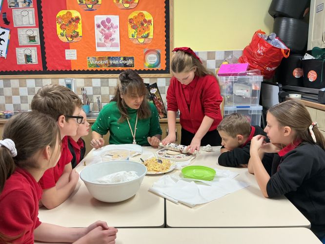 To finish the topic, the children took part in a cooking activity where they made aloo paratha with a cheesy twist, along with refreshing mango lassi. They helped prepare the dough, rolled their own parathas, and enjoyed tasting everything together. It was a fun and memorable way to bring their learning about India to life.